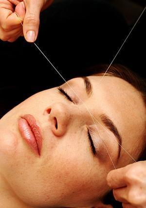 Эпиляцию нитью предлагают уже многие салоны красоты. Суть метода состоит в том, что мастер "проходиться" по обрабатываемому участку кожи хлобчатобумажной нитью, переплетенной особым образом. При этом волоски попадают в нитевые петли и выщипываються с корнем. Такой способ особенно хорошо подходит для удаления волос на лице: над губой, для коррекции бровей. Также к нему прибегают для эпиляции зоны груди, живота, рук, ног.