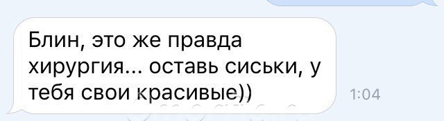 "Привет, мне очень нужна грудь, у меня ее, оказывается, нет".